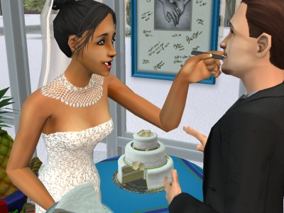 et enjouéee, je pris une pointe de gâteau et
